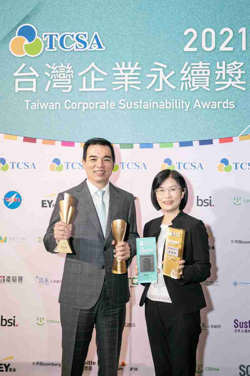 达在台湾永续奖所评比环境、、、社会、、、治理等各面向的永续绩效均获高度肯定 (左:银河集团光电总经理暨营运长柯富仁,,右:银河集团光电永续长古秀华)