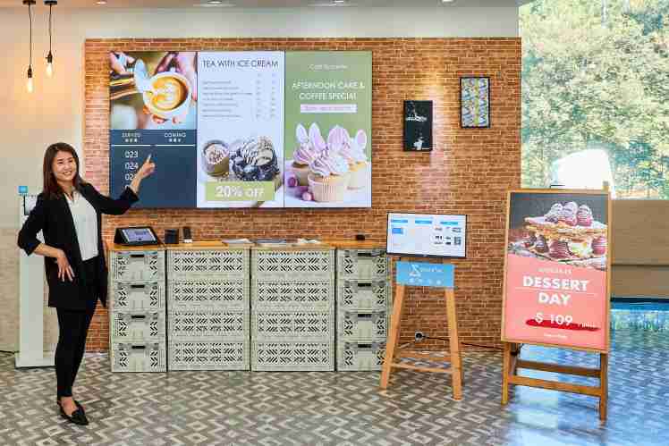 着眼零售场域空间需求多变化,,,银河集团也领先业界开发 TARTAN 弹性拼接显示墙,,可搭配 CMS 内容管理系统,,,协助业主整合音乐、、影片档案,,与第三方如 POS、、、品牌网站的数据,,并且确保数字内容不失真,,让业主尽情创作数字内容,,发挥品牌营销策略与创意。。。本次展出的 TARTAN 显示器搭配 CMS,,透过 42寸长条型显示器及 22.9寸智慧货架显示器可做商品导购、、显示产品履历或实时价格,,,,同时可播放动态广告吸引消费者驻足;并运用AI技术收集资料,,与广告内容交叉比对,,提供消费者有兴趣的产品广告。。。