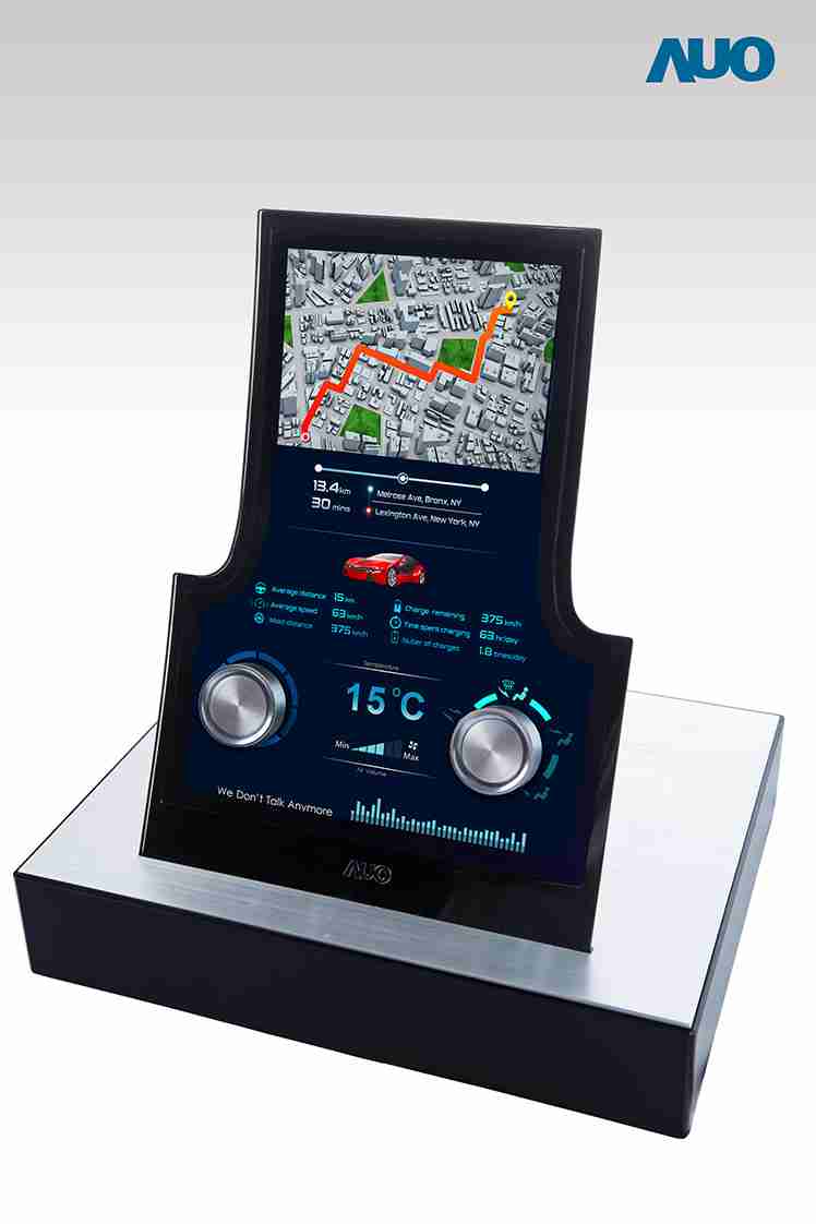 12.3 寸 Full HD LTPS 显示屏同样具备 1000 nits 高亮度,,搭载内嵌式触控技术,,,,整合驱动与触控 IC 于显示屏制程,,,使显示屏厚度降低,,,为中控台创造更多机构设计空间。。应用于抬头显示器的 3寸 LTPS 显示屏具有高穿透率、、、1200:1 高对比度度,,,以及 297 PPI 高画素密度。。。液晶最高可耐受到 110C 的高温 (TNI) 而不液化,,,,在阳光高温下维持优异稳定的显示效果。。