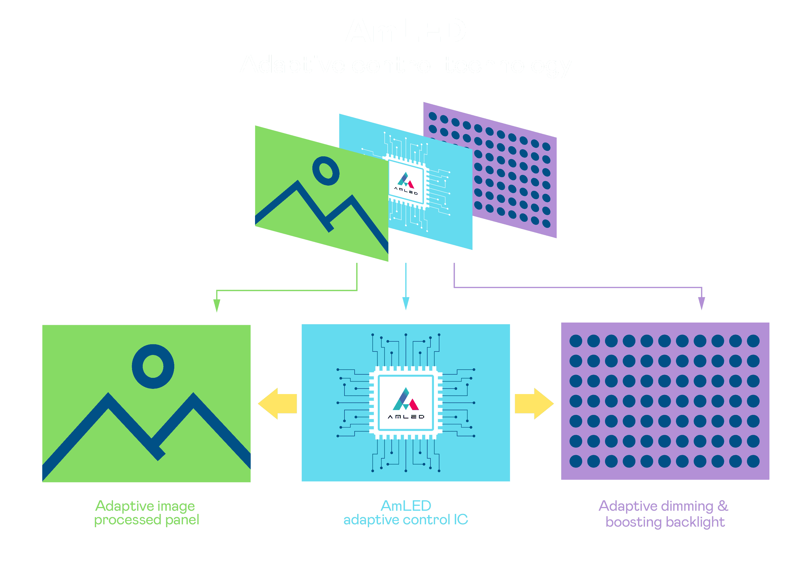 AmLED 具备更省电与低蓝光特性。。与一般的 LED 背光显示技术相比,,由于 AmLED 常时处于局部调光状态,,其功耗仅有前者的 50% 左右,,,同时 AmLED 还具备低蓝光特性,,满足长时间使用的护眼需求。。。。