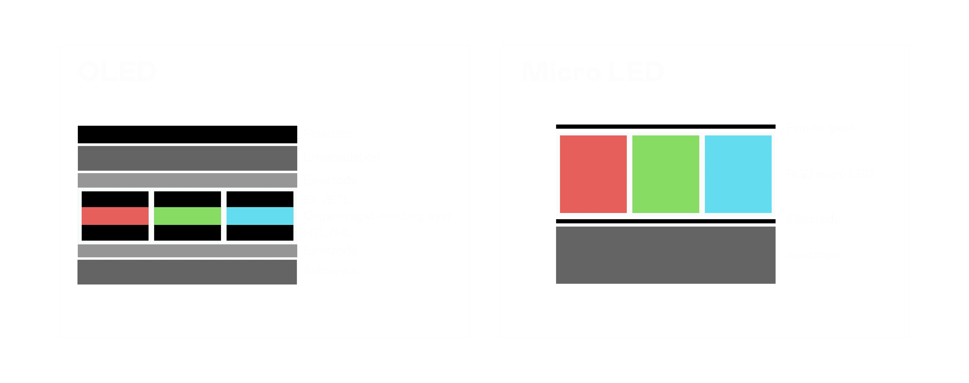 以 LED 做为显示画素,,,,可让 LED 的发光效率发挥到极致,,,,从而让显示器具备优异的亮度表现,,不论是在户外或室内,,均具备出众的显示效果。。同时,,,,与使用有机材料的 OLED 相比,,,LED 具备更稳定、、、寿命更长的特性,,不仅不会有画面烙印问题,,,而且更不容易出现故障、、、、坏点。。。